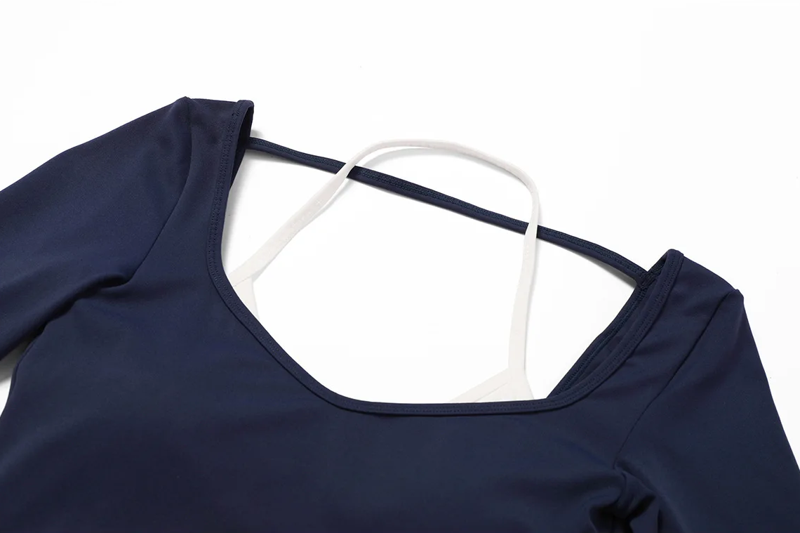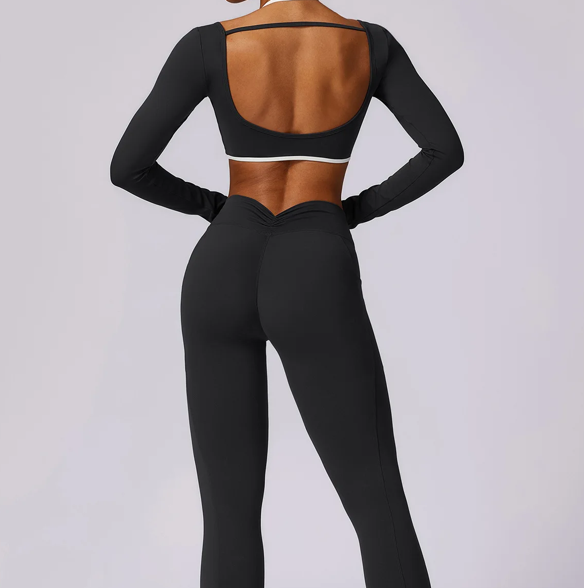 Featuring a soft square neckline, sculpting high-waisted trousers, and a clean two-tone finish — it balances form and flow in every movement.
