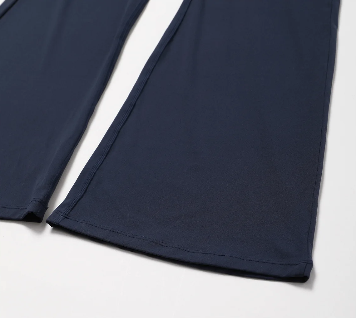 Its body-contouring fit, flared legs, and subtle open-back cut create a silhouette that moves with intention.