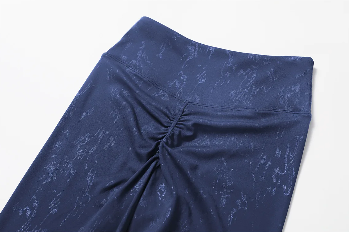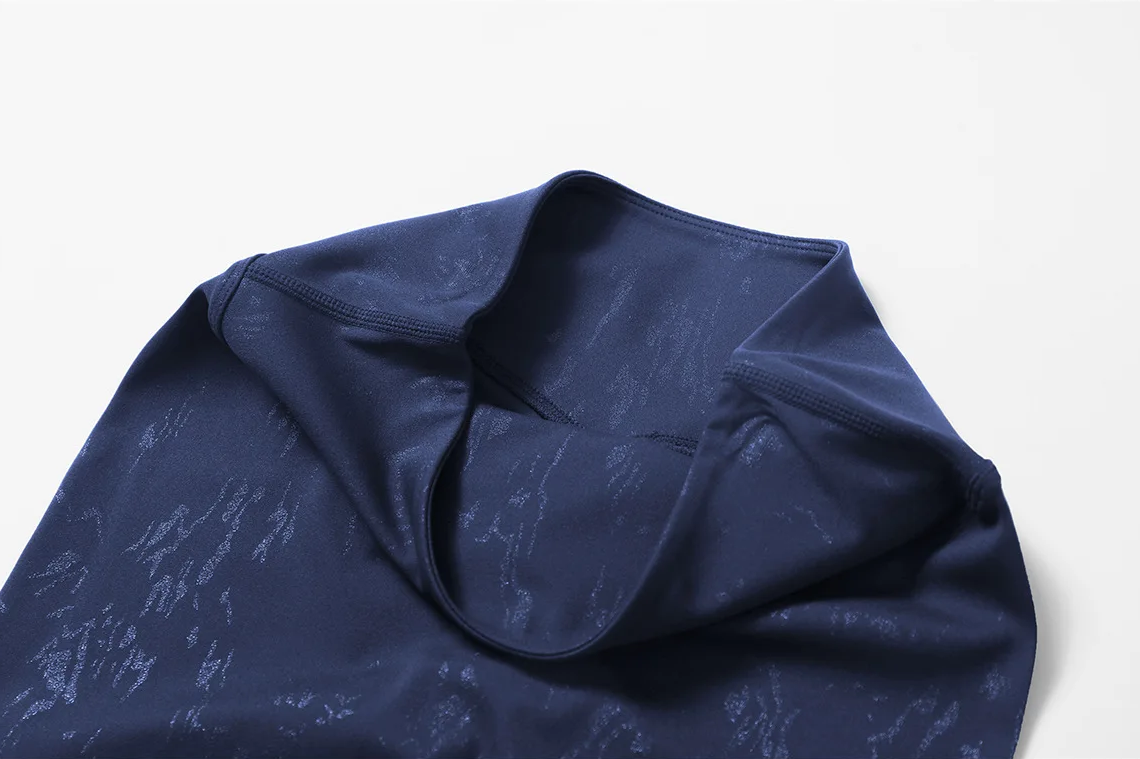 "The waistband doesn’t move at all — super secure and flattering. The textured pattern is subtle but really pretty. The Bleu Nuit color looks great."